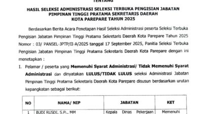 PAREPARE, KLUPAS.COM – Perebutan kursi Sekretaris Daerah (Sekda) Kota Parepare memasuki babak baru. Panitia Seleksi…